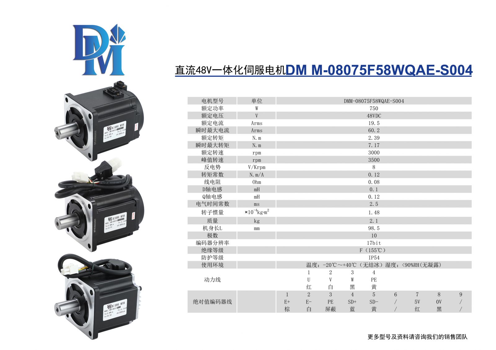 48V一体化直流伺服电机M-08075F58WQAE-S004