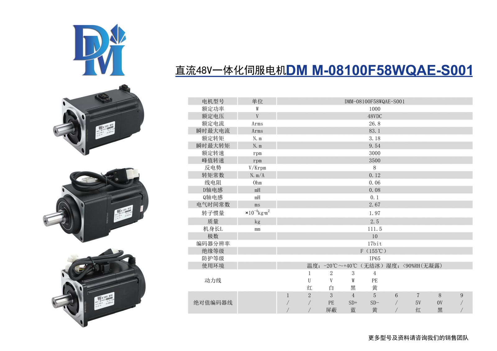 48V一体化直流伺服电机M-08100F58WQAE-S001